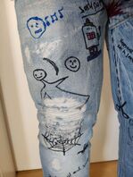 Also ich war schon immer ein großer Fan jeder Artv von Bürsten (egal ob Scheuerbürste, Messingbürste oder Drahtbürste) und Scheuermitteln und so weiter für die Jeans 😊