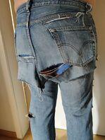 leider ist einige Zeit später die Kreuznaht vollständig gerissen und dann war es eigentlich nur noch Loch im Schritt.