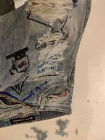 und du meinst das sollte ich mal mit der dunkelblauen machen? Den hellen Stoff der Beide der Hotpants einfach großzügig über den heftigen Riss der dunkel blauen nähen?