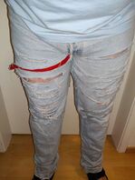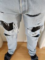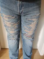 du meinst ich sollte etwas von dem hellblauen Stoffes eines Beines nehmen und damit die dunkel blaue Jeans etwas damit flicken?