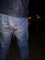 so der Riss über der Tasche hinten ist nun noch größer geworden und auch sonst die aufgefetzten Stellen sind noch ein wenig größer geworden. ![]()