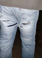 Da bin ich mir gar nicht so sicher, eher sieht man die zweite Lage, der Flicken die unter dem originalen Jeansstoff sind ![]()