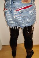 Wenn, dann eine lange, enge und schön offene(zerfetzte) Jeans über der Latexhose 😃👍🏻