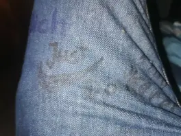 Ich glaube das wäre jetzt nicht so gut, dass ich auf meinen Jeans rumkritzle akzeptiert er ja mittlerweile, aber bei seinen ist das (noch) ein NoGo